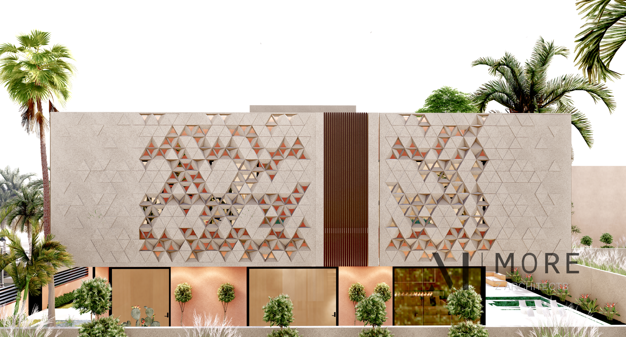 Conformément à notre pratique, le design est moderne, minimaliste, axé sur la qualité ainsi que la sophistication, et les matériaux sont basiques : plâtre peint, verre et bois. La vision est de fournir un espace baigné de lumière avec une ventilation naturelle et ainsi économiser l'énergie, grâce à l'installation de grandes baies vitrées qui permettent à la lumière naturelle de baigner les pièces intérieures en toutes saisons. Chaque partie n'a pratiquement pas besoin d'être éclairée pendant la journée. L'utilisation de vitrage sur les façades renforce la relation entre l'intérieur et l'extérieur et au-delà du plaisir de voir le bâtiment couvert de lumière, il y a aussi le fait important d'économiser l'électricité et de gaspiller moins d'énergie tout en pensant à l'environnement. Le design est un jeu avec les volumes et les cubes. Le sol semble flotter sur le volume inférieur, ces espaces de vie parfaitement aménagés.